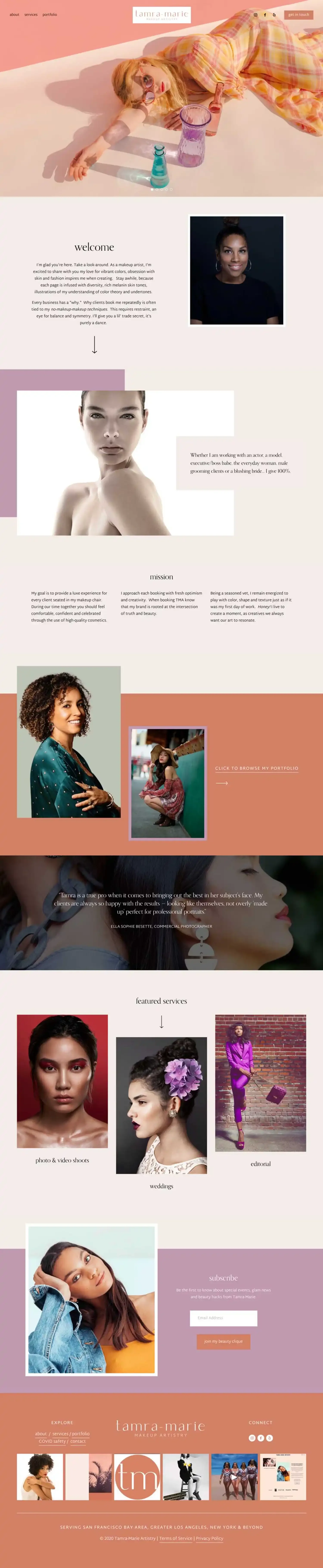 Tamra Marie Belladonna Jan 20 Written By Erica Hartwick BUSINESS: Tamra MarieINDUSTRY: Makeup ArtistTEMPLATE: Belladonna Shop The Template Squarespace Template Gallery Shop the Belladonna Template Squarespace Template Gallery Style: MinimalStyle: ModernIndustry: Service BasedStyle: BrightStyle: Bold Erica Hartwick http://www.bigcatcreative.com