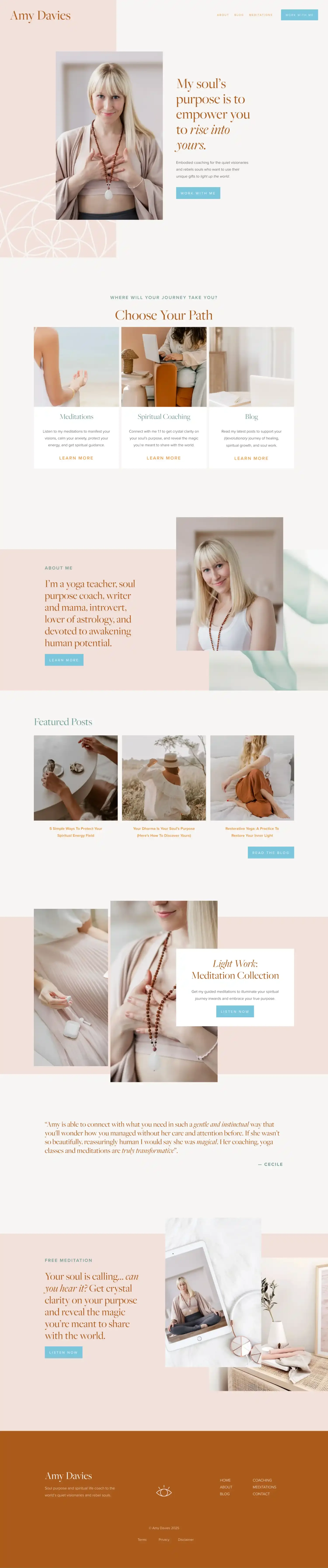 "Thank you for making my website redesign a much easier process! Buying the Victoria template saved me so much time and energy because I didn’t have to try and translate my vision from my head into Squarespace, and then never feel happy with it! Now my site feels like a true reflection of me and looks beautiful. I managed to launch in just over a month (with only a couple of hours a day to work on it while my baby slept!) Now I can stop endlessly tinkering and do the work I’m meant to do!"